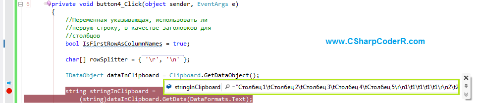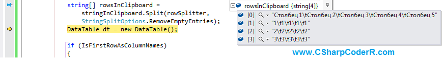 string[] rows = rowsInClipboard[i - 1].Split('t');