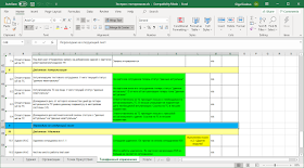 Я добавил еще итоговый столбец в котором отражается ход выполнения задачи и цветовое выделение характеризующее выполнение. Потом пришлось еще пару раз пройтись по списку таблиц, но с другими пунктами для проверки, и я добавил возможность выбора из выпадающих списков.