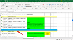 Я добавил еще итоговый столбец в котором отражается ход выполнения задачи и цветовое выделение характеризующее выполнение. Потом пришлось еще пару раз пройтись по списку таблиц, но с другими пунктами для проверки, и я добавил возможность выбора из выпадающих списков.