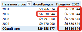 Обратите внимание: мы использовали имя меры в качестве первого аргумента функции. Аргумент [Filter1] не заключен в кавычки – столбец Year числовой (дата в Excel – это число). Если бы он был текстовым, нам пришлось бы использовать кавычки «2002». Мы использовали только один фильтр, но могли бы использовать несколько.