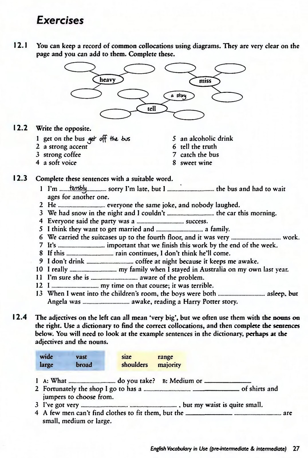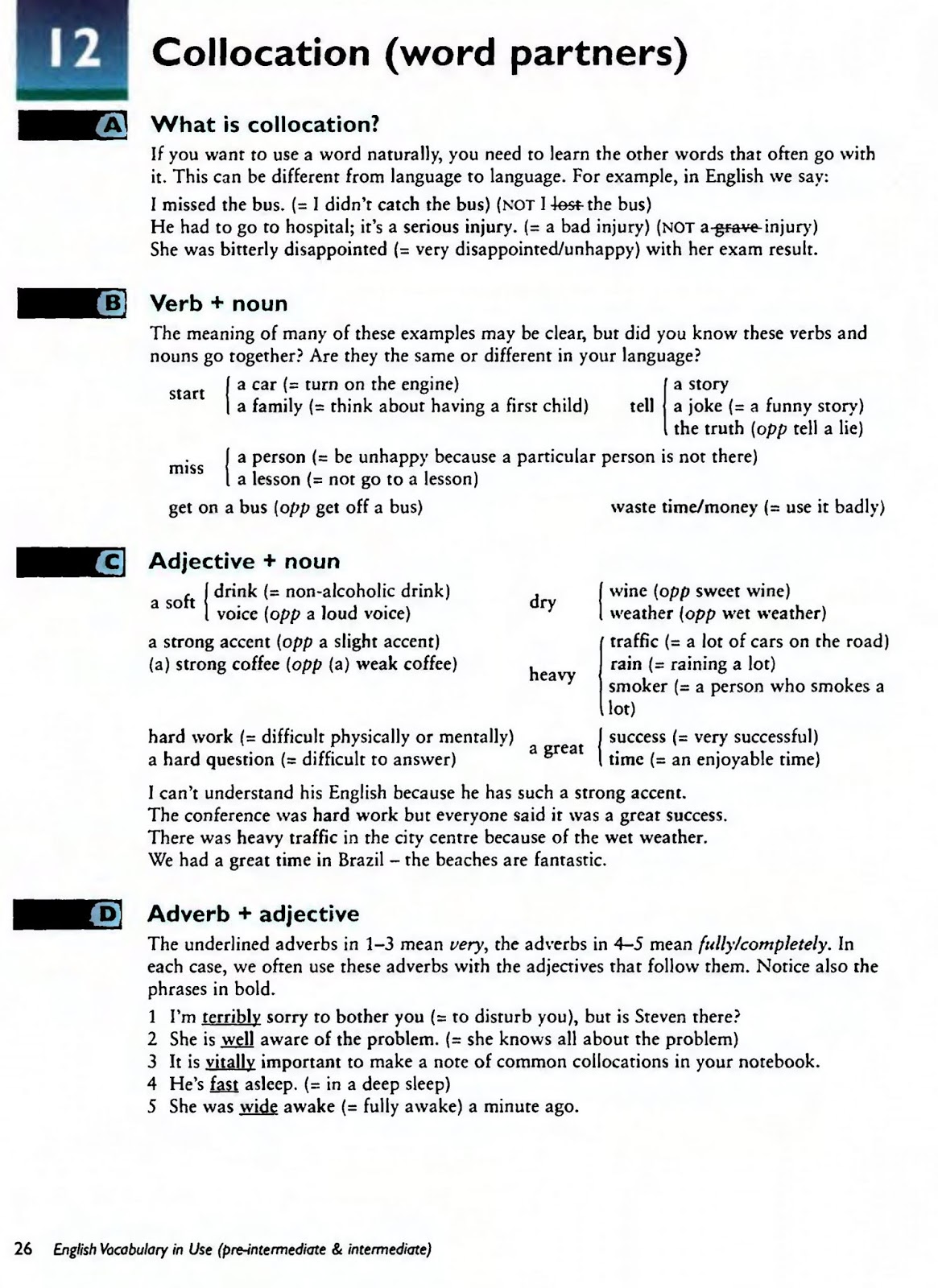 12 Collocation (word partners) miss the bus, a soft drink, fast asleep