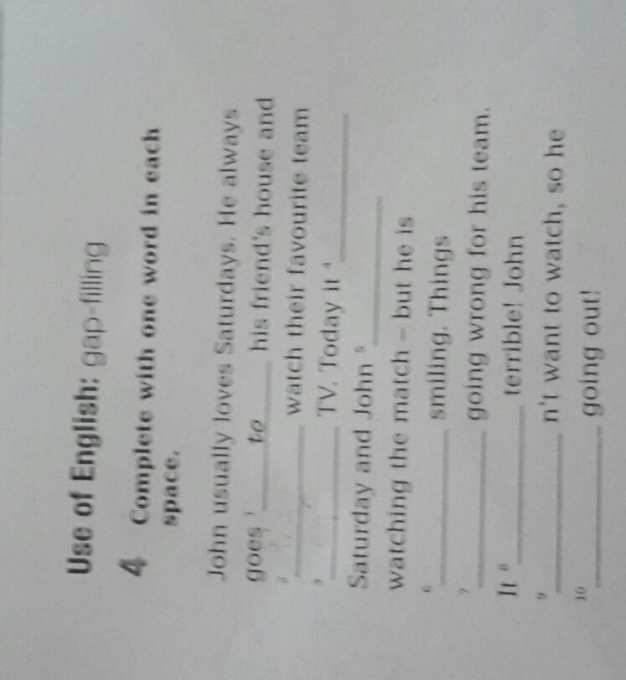 4 Complete with one word in each space . John usually loves Saturdays . He always goes to