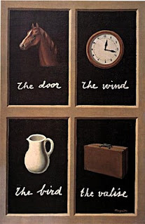 It is, as one art critic says, a school reading primer gone wrong — yet sometimes, not completely wrong, for example in the image opposite (Key to Dreams,1930) the lower right-hand cell is correct.