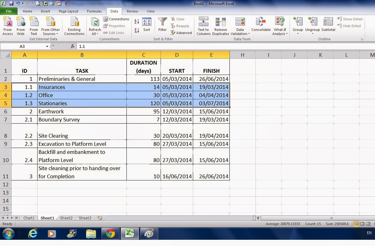 Next step is to group task under a major task. To do this, First select «Data Tab». See Picture Below.