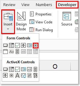 To add an Option Button to your spreadsheet, you will need to navigate to your Developer Tab in the Excel Ribbon. Once the Developer tab has been selected, you will need to open the Insert menu button and click the Option Button icon. You can then proceed to draw an Option Button control on your spreadsheet.