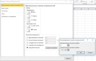 Осталось повторить эту процедуру для горизонтальных погрешностей совершенно аналогичным образом, указав положительное значение ошибки =0, а отрицательное — как диапазон A2:A8: