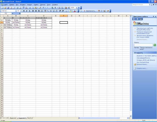 - Ход выполнения работы. Таблицы истинности и схемы логических выражений в MS Excel