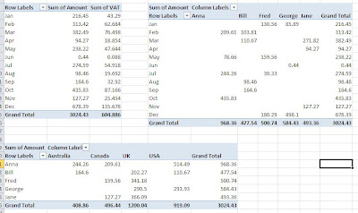 Its real power however comes when you wish to add additional analysis and calculations, so for example you could add additional analysis columns for Salesperson and Country, and a VAT column (being 20% of amount):