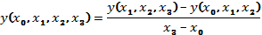 На примере исходных данных, приведенной в таблице 2, рассмотрим методику вычислений значений интерполируемой функции для значений аргумента х, не совпадающих с узловыми точками таблицы. Вычислим значение функции Y для Х=1.