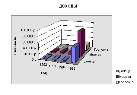 Точно так же можно строить кольцевые и линейчатые диаграммы, гистограммы, пузырьковые, биржевые и т.д. Возможности Excel разнообразны. Вполне достаточно, чтобы наглядно изобразить разные типы данных.