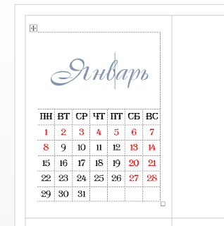 Примечание: Элементы, представленные в шаблоне календаря, можно редактировать точно так же, как и любой другой текст, меняя шрифт, форматирование и другие параметры.