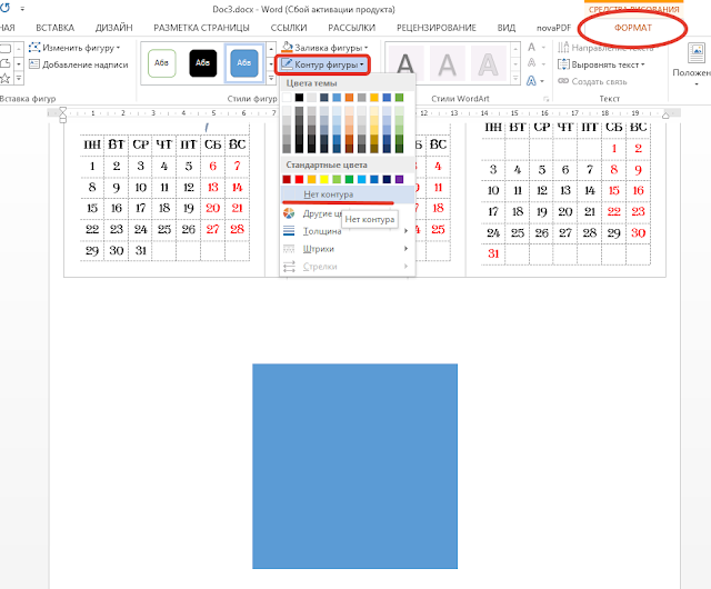 Вместо однотонного цвета, можно установить картинку фоном для календаря. Как поставить рисунок в качестве фона в Ворде, я описала в соответствующей статье.