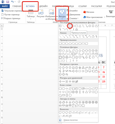 Так что вставлять рисунок будем не прямо в лист, а через фигуры. Открываем вкладку Вставка — кнопка Фигуры и выбираем прямоугольник.
