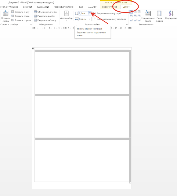больше см. Если у вас поля у принтера одинаковые – то увеличивайте высоту ячеек