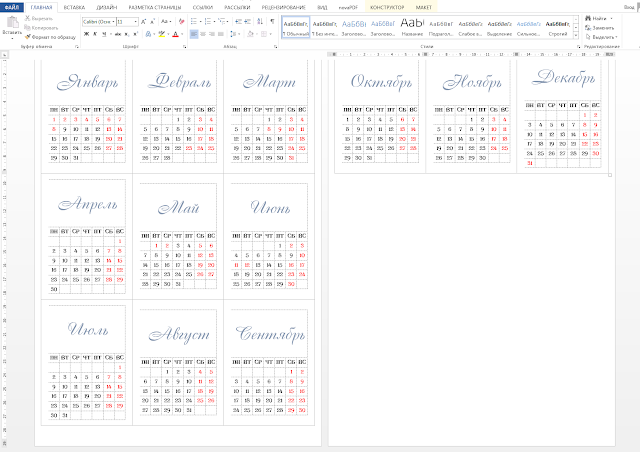 Для редактирования внешнего вида данного календаря также можно использовать настройки таблиц на вкладках «Конструктор таблиц» и «Макет».