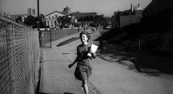 His goody-two-shoes girlfriend Sheila (Dianne Michaels) rushes back from class.