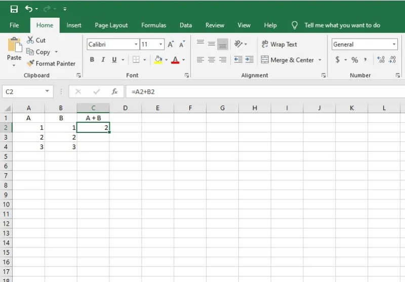 Например, на изображении ниже ячейка C2 содержит формулу A2 + B2. Но благодаря относительным ссылкам на ячейки Excel читает это так: добавьте ячейку, которая находится на два места слева, к ячейке, которая находится на одно место слева.