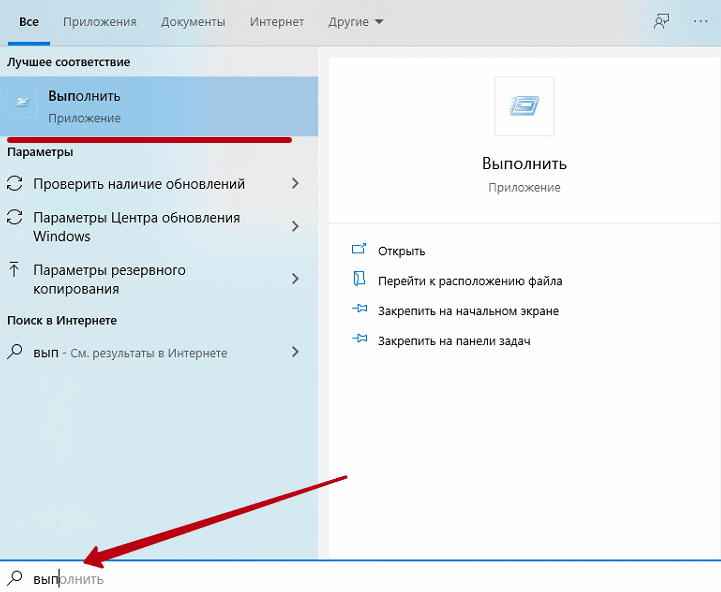 1) Открыть «Пуск» ввести «выполнить»