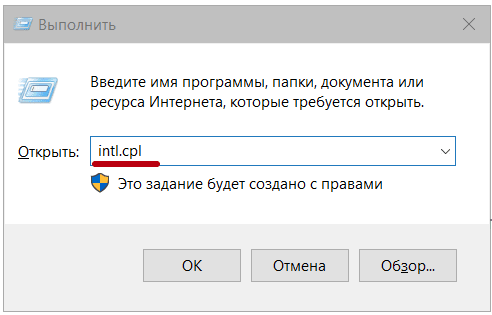 2) Ввести intl.cpl