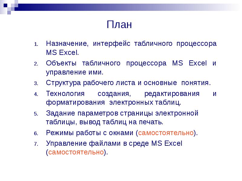 Занятие №11 Работа в среде табличного процессора MS Excel