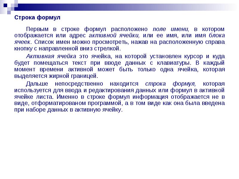 Редактирование в строке формул: выделить соответствующую ячейку и щелкнуть левой кнопкой мыши в строке формул , а затем внести соответствующие изменения.