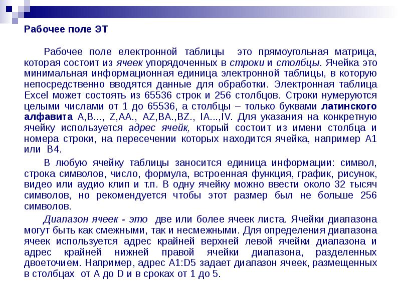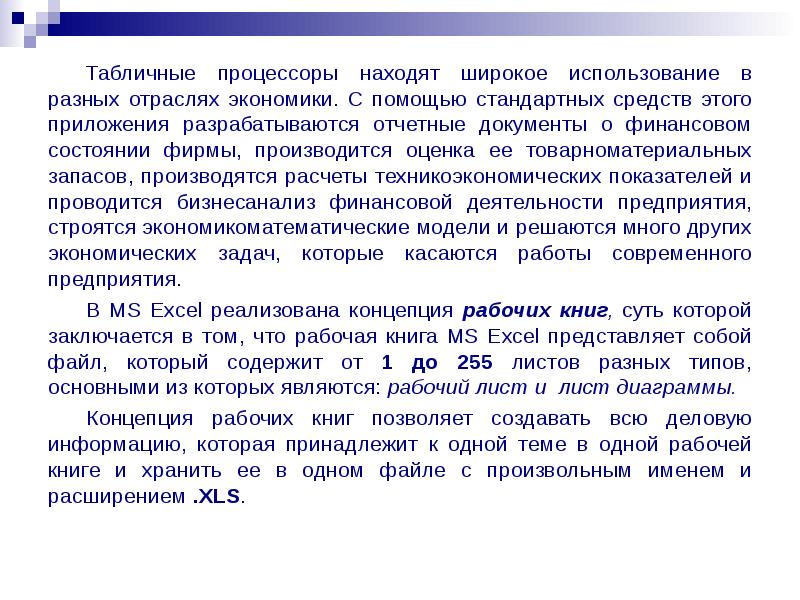 Электронные таблицы MS Excel