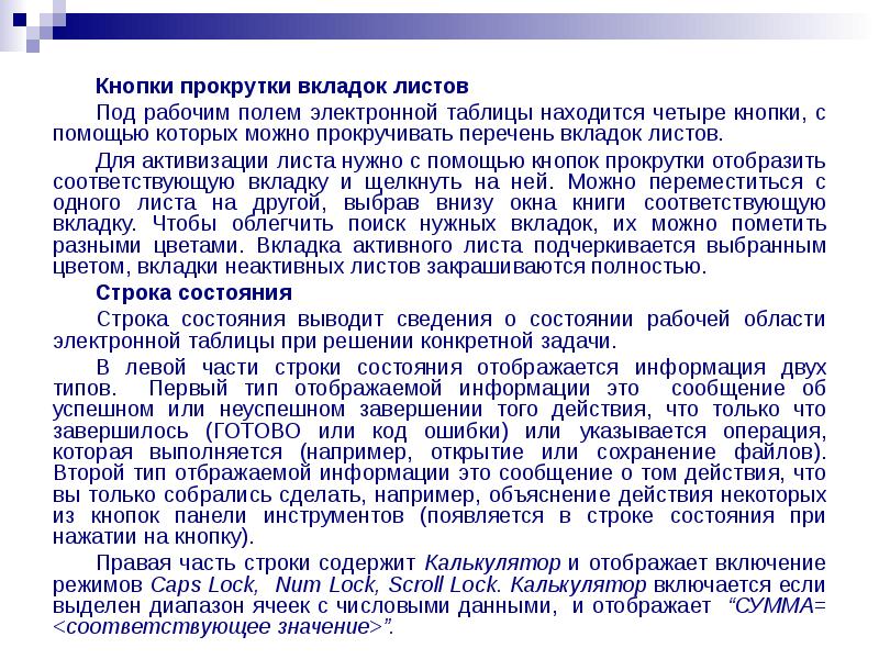 Ввод данных любого типа выполняется только в активной ячейке. Операция ввода данных в ячейку обязательно должна завершаться нажатием клавиши <Enter>, или одной из клавиш перемещения курсора.
