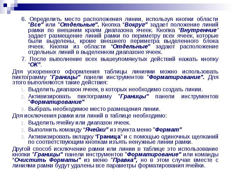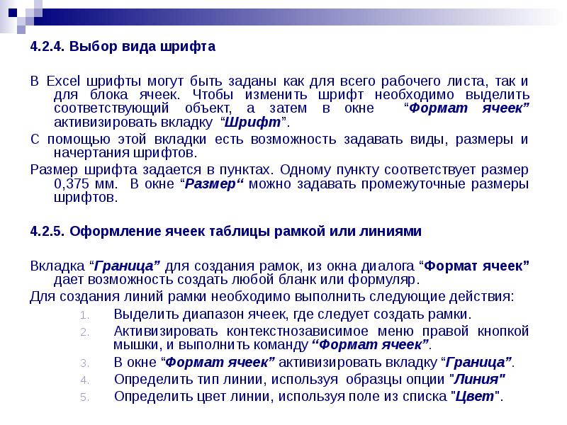 4.2.5. Оформление ячеек таблицы рамкой или линиями
