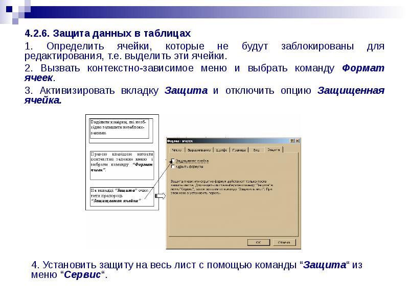 4.2.6. Защита данных в таблицах