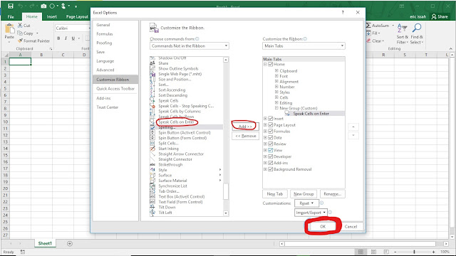 4. Scroll to SPEAK ON ENTER, click on the ADD button and finally click on OK