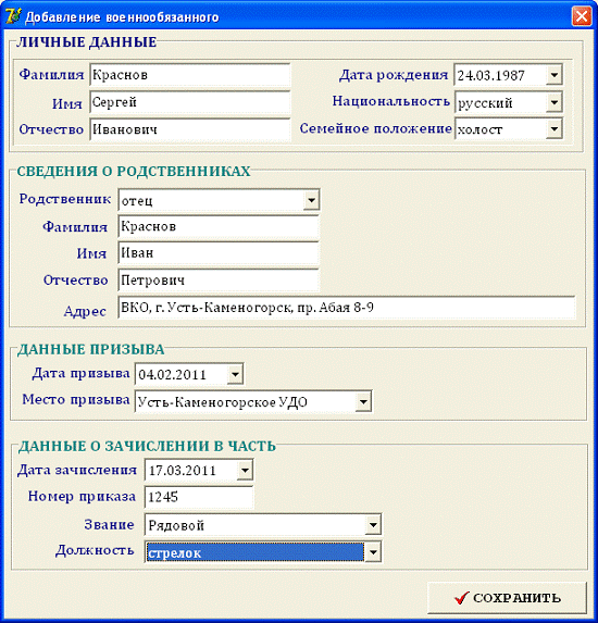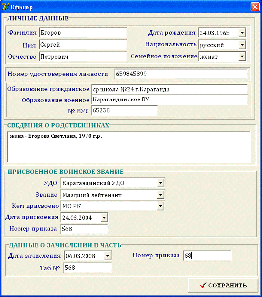 Скриншот программы Кадровый учет военнослужащих 2.7.1s