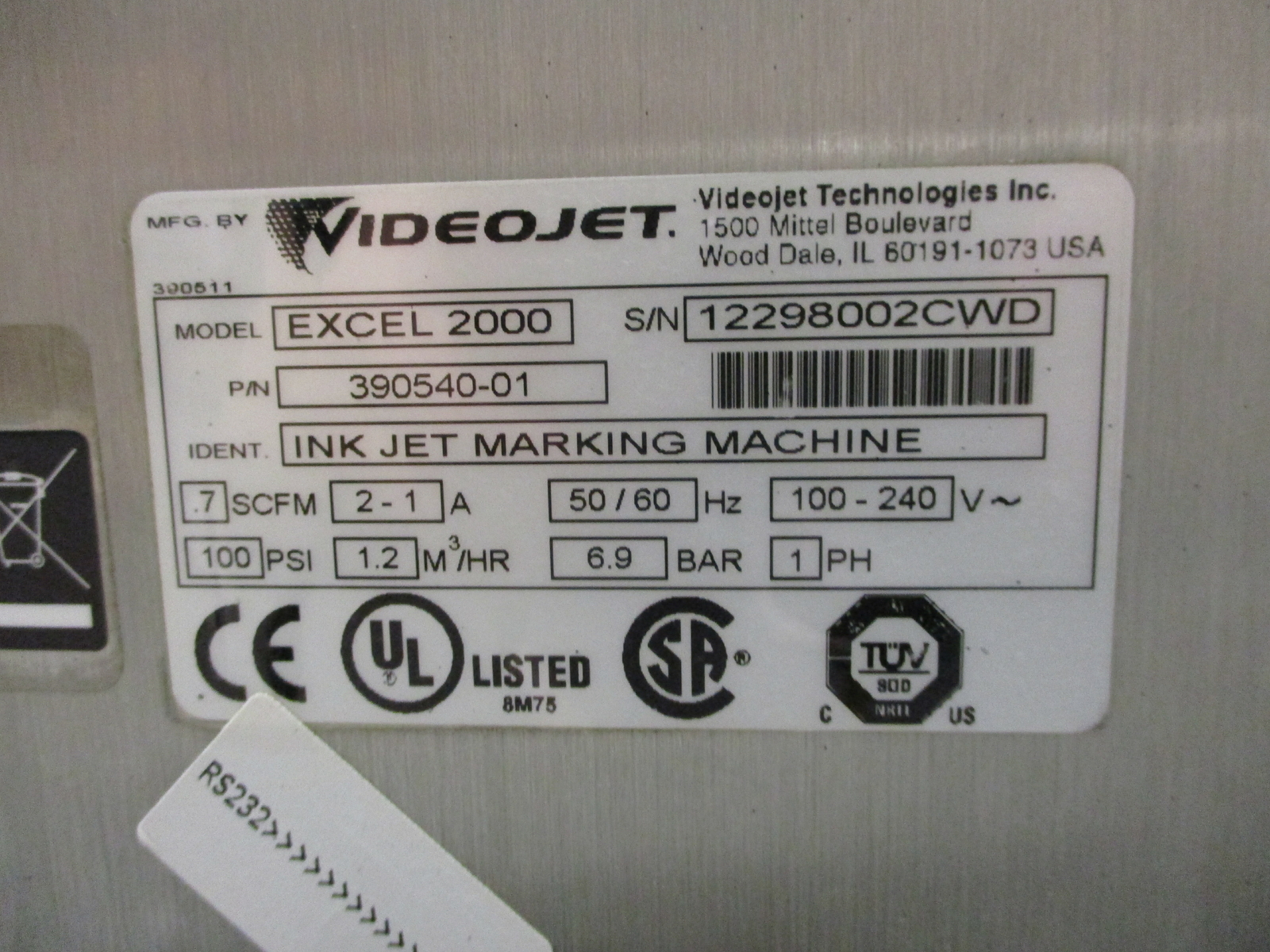 VIDEOJET EXCEL 2000 INKJET MARKING MACHINE w PRINTHEAD