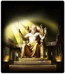 The Statue of Zeus shows the god in a position of authority, his skin made of ivory and his robes of hammered gold. It stands 12 meters tall and was intended to inspire wonder and awe in those who visited the temple.