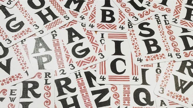 Quiddler is a lot of fun for wordsmiths and vocabulary aficionados. Players are challenged to create words from an increasing number of letter cards in their hands. Players start the game with a draw of three cards, but the number of cards drawn goes up by one after each round for up to eight rounds.