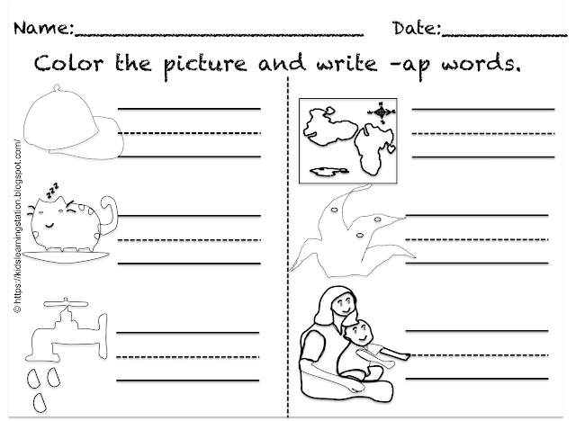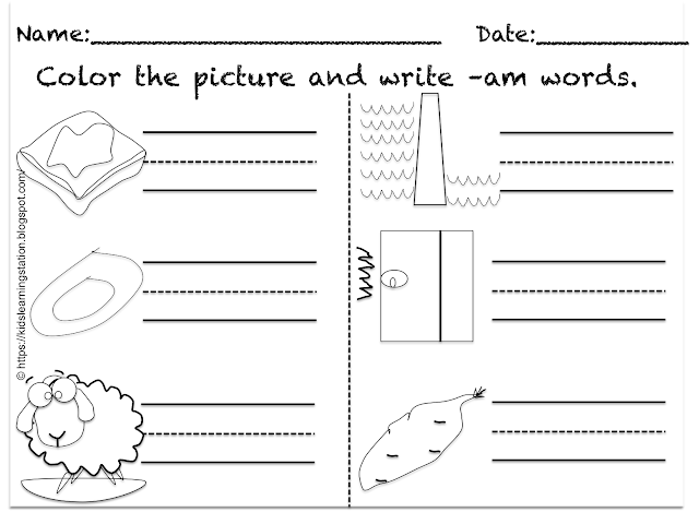 - Children use the printable alphabet letter tiles to make up and glue together the word family words.
