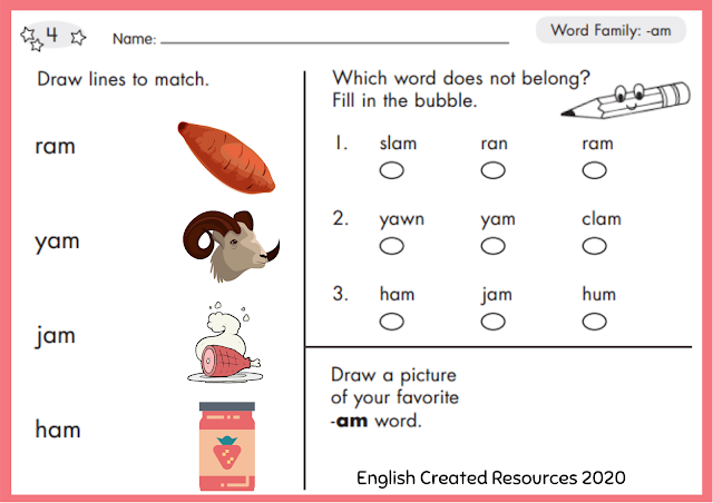 Try out some of our many other word family units: -ad, -am, -ail, -ake, -at,