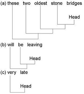 The term ‘syntactic structure (formula)’ implies the description of the order and arrangement of member-words in word-groups as parts of speech. For instance, the syntactic structure of the word-groups a clever man, a red flower may be described as made up of an adjective and a noun, i.e. A + N; of the word-groups to take books, to build houses — as a verb and a noun, i.e. V + N.