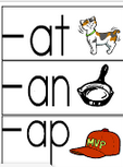 What’s even better about these cards, is that they can be printed over and over. If you have a color printer, it’s even better, but they still look great in black and white. We also use the cards for a sound sorting work station. After we do -at and then -ap, we make copies of the cards and put them in a bag with the header cards. We teach the students to ‘read’ the pictures and sort them accordingly. Each student has a white board and after the