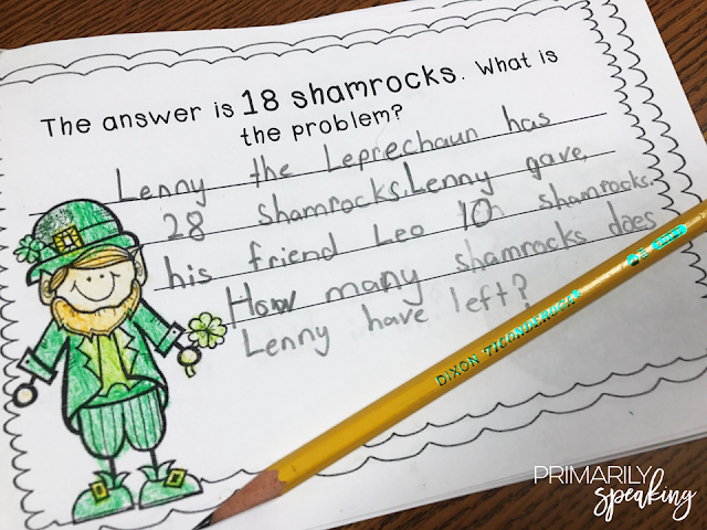 I love using my What’s the Problem? mini books for practicing this skill (shown above, and below). I made an entire series of these mini books several years ago, and they are still a useful resource. Did I mention that they are a freebie? This one is The Lucky Edition, but I’ve made one for just about every month of the year.