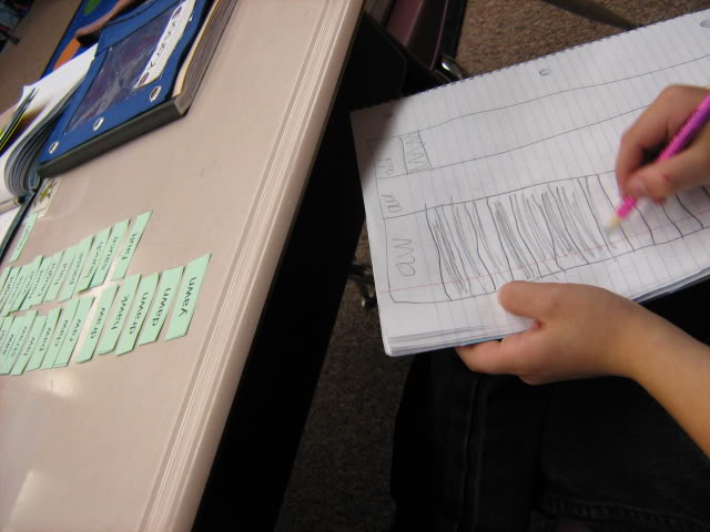 Thursday—Students sort and graph as part of their morning work. A couple years ago I had a student who HATED word sorts. He invented sort & graph as a shortcut. The students sort their words and then draw a graph in their notebooks. I let them choose what kind of graph