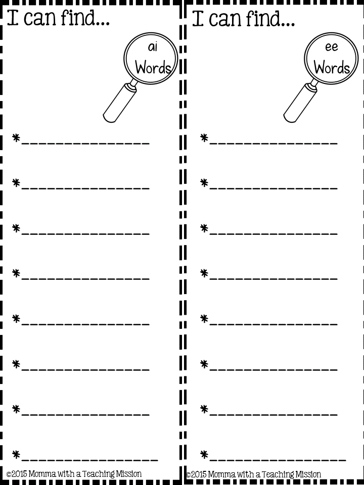 Thursdays are our day to be detectives. During their word work time, they have these 1/2 sheets of paper, and they look through their independent reading materials to fill in words that have the pattern that they are looking for. I apologize I don’t have any pics of this word work activity in action, I just added it this past week, and didn’t get a chance to snap any photos! I have it printed on card stock and laminated so to reduce paper usage (which is a problem in my school). You can find the Word detective Recording Sheets