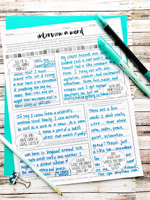 is fun to encourage the “words” to show their personality and act as though they were truly embodying their word. My students really enjoy acting things out like this! I suggest doing this activity in pairs or small groups, however, if a child is working independently, he or she can just write down the answers to the interview questions on paper instead of posing the questions for someone else to answer.